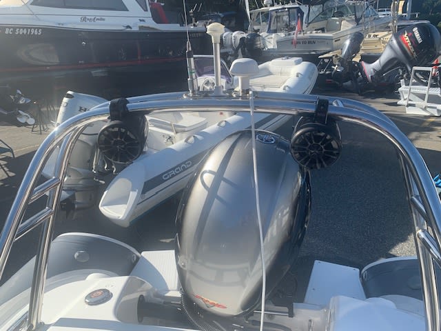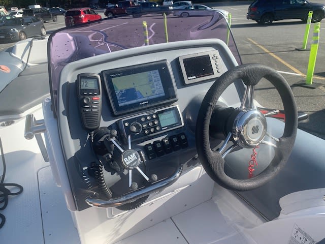 Garmin, VHF radio, Garmin GPS map741XS, Fusion sound system with arch speakers, built in Battery charger, 12V power point, digital yamaha gauge, remote fuel water separator, hypalon tubeset with relief valves, stainless steel rails and arch, lots of below deck storage, built in 23 gal fuel tank, under water light, lift points, boarding ladder, beaching shoe. This great little RIB is sitting on a custom deluxe aluminum I beam trailer. Call anytime for an appointment to view.