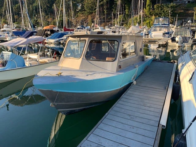 Commercial grade Diesel aluminum Argo hardtop cabin boat with Alaskan bulkhead. The economical Volvo 4 cyl KAD32P diesel engine puts out 180 hp. Trim tabs, swim grid, hatch above helm, self bailing deck transom mounted motor bracket. This one has been used as a reliable transport to Gambier Island. Not just your average bumpy riding tin boat. Ask about assumable moorage in West Van. Call anytime for an appointment to view.