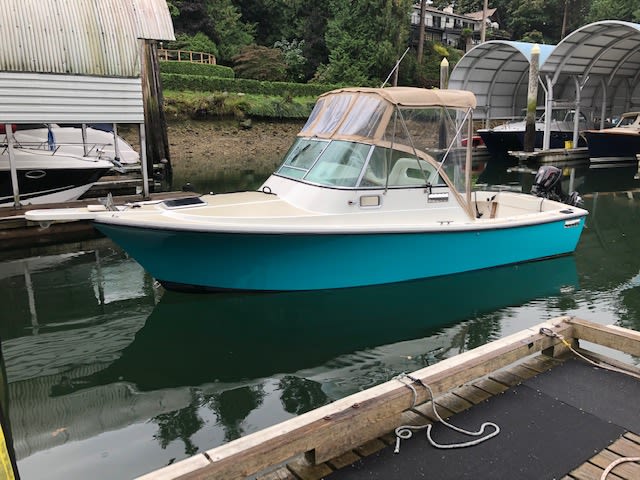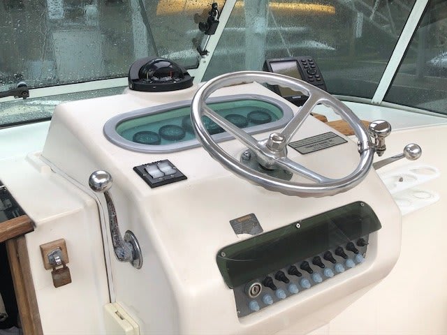 The Shamrock 220 Walkaround has a cuddy cabin with a double berth, storage, and a portable marine head beneath thickly upholstered cushions. The cockpit has plenty of room to fish, a circulating baitwell in the transom, rod storage, and an insulated fish box. The convenient swim platform provides easy boarding for swimmers. The 220 Walkaround has Shamrock’s patented KeelDrive power system. A fully integrated, full length keel protects the bottom, prop, and rudder. The result is a line of inboard powered boats that can beach or run shallow without a worry. The keel also enhances the boat’s overall stability and tracking and makes it predictable and seaworthy in heavy seas. The rebuilt 351 motor has only 246 hours on it. The decks have been coated with KiwiGrip. Some features include, Garmin GPS map, VHF radio, Ritchie compass, trim tabs, windshield wiper, kicker not included. Call anytime for an appointment to view.