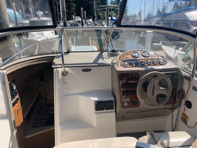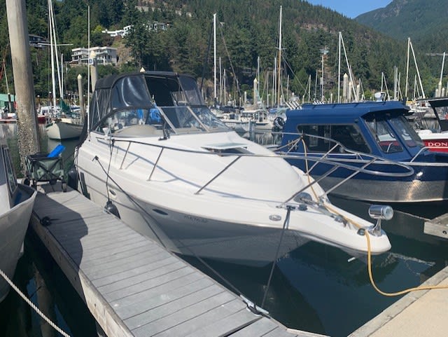 NO LUXURY TAX! Wow , this Maxum is a great little cruiser, very clean with loads of recent upgrades including a 2021 new Bravo III duo prop Mercruiser sterndrive and a 2014 Mercruiser 350 Mag. Ask about moorage in West Van. The owner loves this boat but has purchased a bigger boat. This little cruiser sleeps 4 with a V berth and mid cabin, has a galley, enclosed head with a shower. The dinette in the cabin is not included, the original one will replace it. The cockpit has lots of upholstered seating and new flooring. The camper top is in great shape. Other features include: transom shower, 2 batteries with an isolator switch and 10 amp smart charger, maxwell windlass with helm remote, 2021 kenwood sound system. 30 amp shore power, hot water, walk thru windshield, bus heat, portlight hatch, trim tabs. Call anytime to set up an appointment to view this tidy little cruiser.