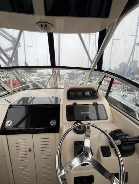Rare 258 Grady White Journey, low hours four stroke F150s. This is a very versatile fishing, commuting , weekend cruiser. It has the Hard top upgrade with a full enclosure for all year boating. The owner is selling because he is aging out of boating. There is a windlass with remote, 2 wipers, Ray C80 GPS / fish finder, bulkhead compass, trim tabs with gauge, Ray VHF radio, 2 batteries with isolator switches. The Vberth is spacious and there is a toilet with macerator. The cockpit is self bailing with a transom door, rod holders, wired for scotty downriggers, folding transom seat , transom shower and raw water wash down. This is a great little fishing package ready to go for the spring. Call anytime for an appointment to view.