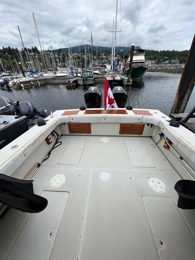 The 2023 Mercury four stroke 250DTS outboards have only 14 hours and a five year platinum warranty, stainless steel props and spares. Fresh bottom paint. All new top of the line electronics, Simrad NSS16 touchscreen, Simrad Halo25+Radar, Xsonic Chirp transducer, Mercury 703 vessel view touchscreen smartcraft gauge, Fusion sound system c/ amp, 2 Start 2 house batteries, trim tabs, new 12v/120V fridge/freezer, New stainless steel windlass cw 40ft of chain and rode, portapotti with macerator, enclosure, radar arch, fish boxes, domestic water, Too many other upgrades to list. Fully transferrable moorage in sunny Gibsons Landing. Don’t miss your chance to own this 27 Revenge a vessel that combines tradition, innovation and pure boating excellence. OFFSITE, call anytime for an appointment to view.