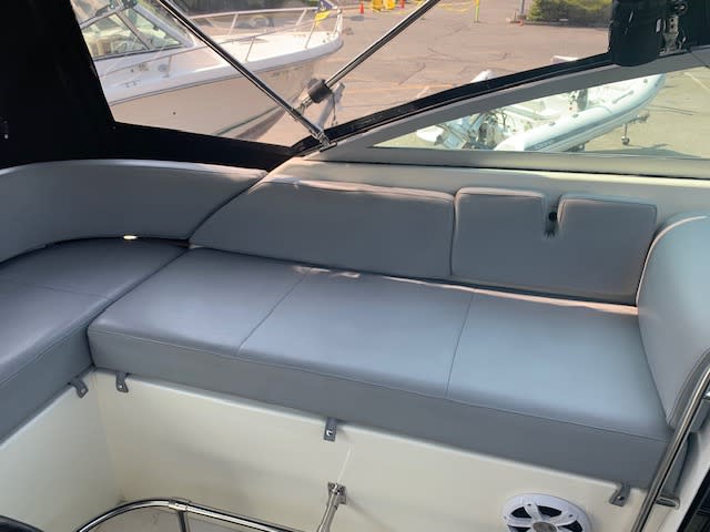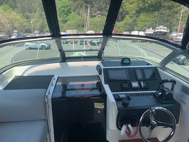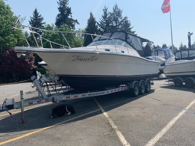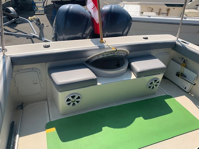 No Luxury Tax ! Wow this gem of a Pursuit really sparkles. This 1991/2014 2800 Open was refit completely and has lived indoors on a trailer since. From the twin F300 Yamaha outboards on the pod (only 245 hrs) to the stainless claw anchor on the bow, this one has class. The new canvas even has tinted windows, the upholstery is plush and beautiful. First class electronics, twin Garmin GPS map screens , Garmin VHF radio, top of the line Fusion sound system, fly by wire engine controls, 3 digital Yamaha gauges, chargmaster battery charger, 30 amp shore power, 2 banks of AGM batteries 31 and 24 series, 1500/2000 GPH bilge pumps, bennett trim tabs, GFCI AC outlets. The cabin has a teak and holly sole, enclosed head/shower, Vberth, galley. The cockpit makes fantastic use of the space where the motor used to be, there is a cavernous below deck storage space. There is a cockpit live well, removable bait cutting board. It even has a custom galvanized triple axle 17,000GVW road runner trailer. What a great package, they simply don’t built boats like this anymore. Call anytime for an opportunity to view. Ask about how to get out on a thrilling sea trial.