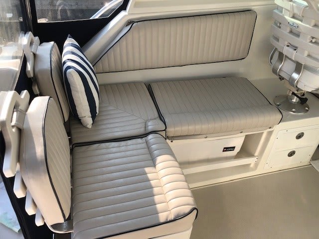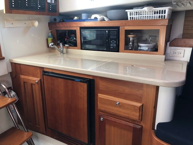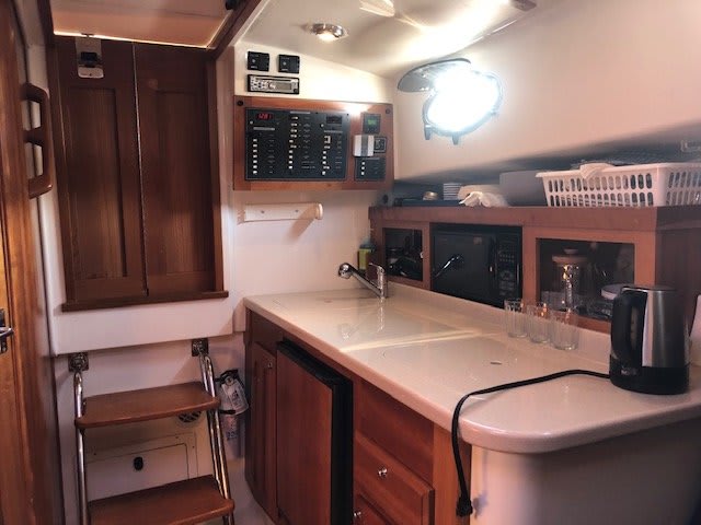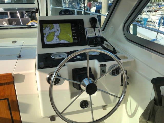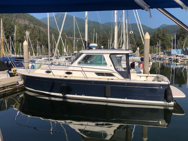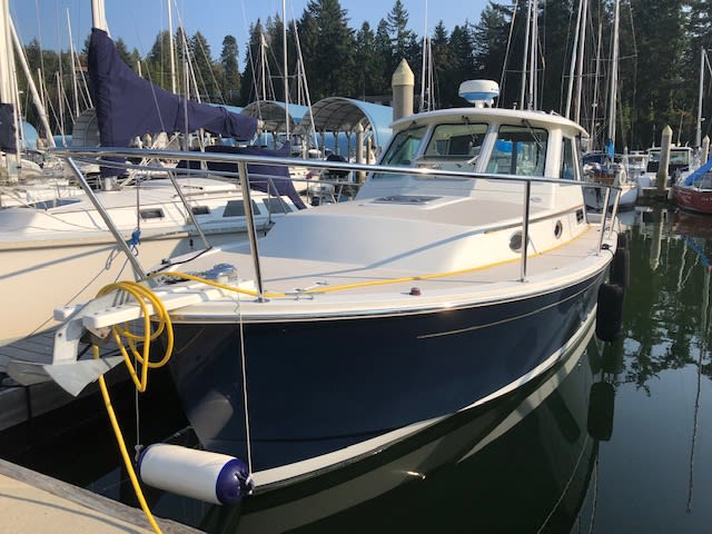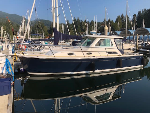 Back Cove is a sister company of Sabre Yachts. Back Cove has combined the classic down east style single screw diesel yacht with a modified deep v-hull for a fantastic ride. There is a full width swim grid, large open cockpit, hard top for an enclosed helm area. The salon is tastefully appointed with a teak and holly sole, cherry cabinets, and ash ceiling strips. The wide side decks afford great bow and side access. This one has bow and stern thrusters, windlass, cockpit shower, downrigger mounts, 3 batteries, VacuFlush head, flatscreen TV, Xantrex charger inverter, heater, Corian counters, Clarion stereo, trim tabs, Icom VHF radio, New Garmin chartplotter, and 3 wipers. Blue Note spent the first 12 years in a shelter in fresh water in Lake Washington. The current owner loves this boat but wants a bigger boat. Full engine service every spring, new timing chain, new exhaust, antifoul & zincs Aug 2020. Call anytime for an appointment to view. Masks mandatory for viewings.