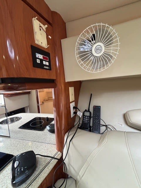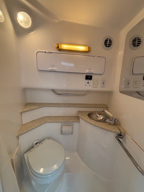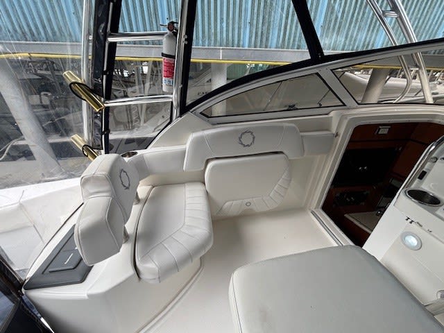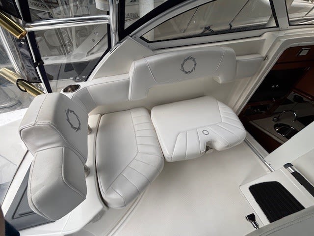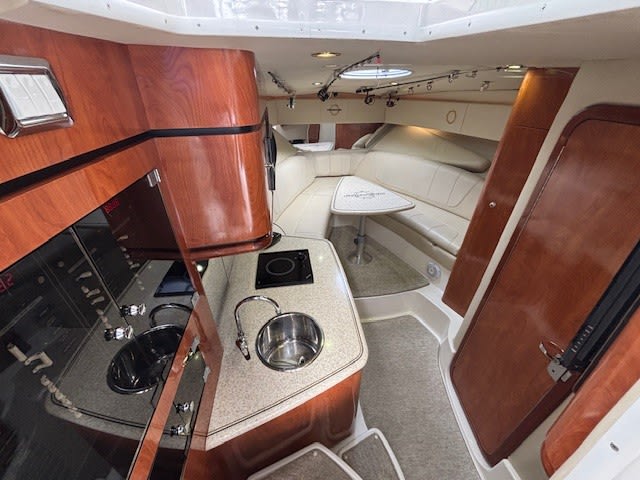 The cabin provides a surprising level of comfort for a performance boat, making overnight stays or weekend getaways easy and enjoyable. Plenty of seating, storage, and thoughtful design make this a versatile cruiser for family and friends.
