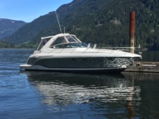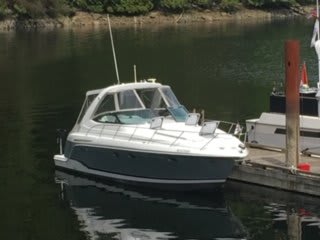 The Formula Performance Cruiser combines graceful design and expert offshore construction. On open water the ride is solid dry and smooth. Major upgrades done by the current owner include: new generator, davit system, new dinghy and motor, new diesel furnace, stern drives, manifolds and risers, polish and bottom paint. Other recent servicing updates include: oil and fuel filter changes, zincs, impeller changes, saltwater pump, hot water line, and new house batteries. The PCs versatile cockpit design is spacious, bright, and great for entertaining. The adjustable double helm is complimented by a port side lounge and the u-shaped aft lounge includes stowable tables and filler cushions to create three different arrangements. Nearby is a wetbar with a Corian counter, sink, and a bar fridge. The walkthrough windshield opens up to the upholstered sun lounge.The interior is finished with extras such as plush soft ultra-leather upholstery, custom teak floors and cherry wood cabinets.The forward v berth is an island queen with a memory foam mattress, privacy curtain, and clothing storage. The galley has a hidden two burner electric stove, a microwave, fridge polished stainless sink, Corian counters, flat screen TV, and ample storage.The aft berth is a double with another flat screen TV and a retractable privacy screen. The bathroom has a partitioned shower, Corian counters and a vacu-flush head. Bowthruster installed in 2014. Offsite. Call anytime for an appointment to view.