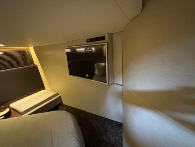 Social floorplan with seamless connection between cockpit and salon via three-pane door and flush threshold